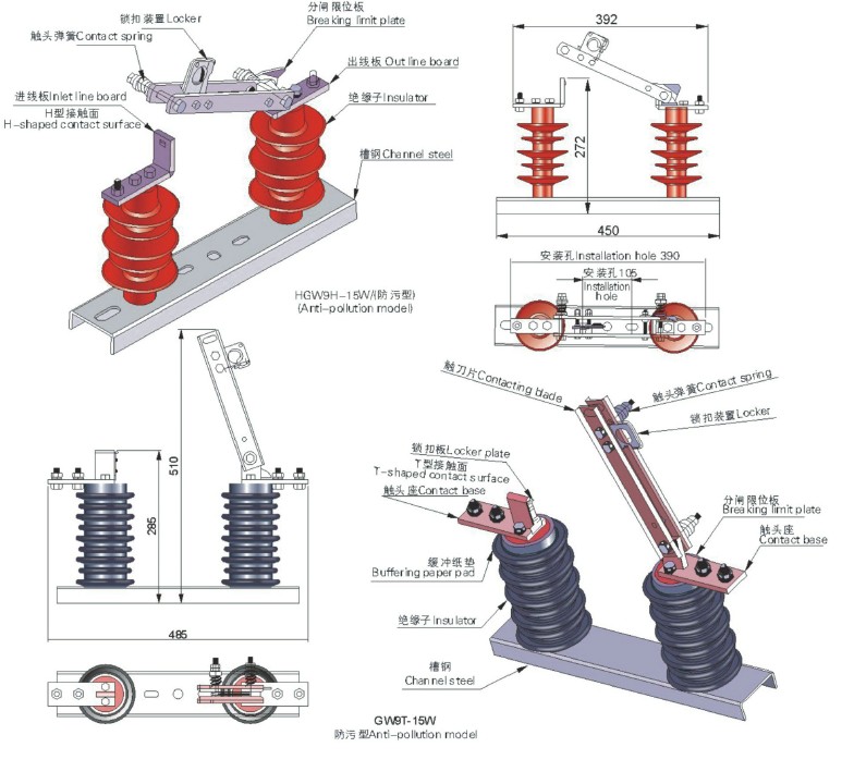 GW9系列戶外高壓隔離開關(以下簡稱為開關)適用于10KV高壓輸配電線路上,用于切斷和閉合無負載有電壓的單相或三相電路。