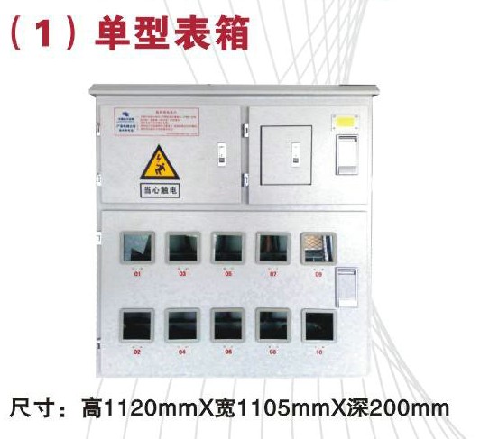 >規格說明:此類單相表箱,結構是主控開關室和出線在上側,電度表室在下側;主控開關從100A-250A,出線斷路器為40A和63A,箱內導線采用BVR6m㎡或BVR10m㎡線,適合安裝40-80A的機械式或電子式單相電度表;共有4, 6,8, 10, 12、5位種規格,適合不同的用戶數量。