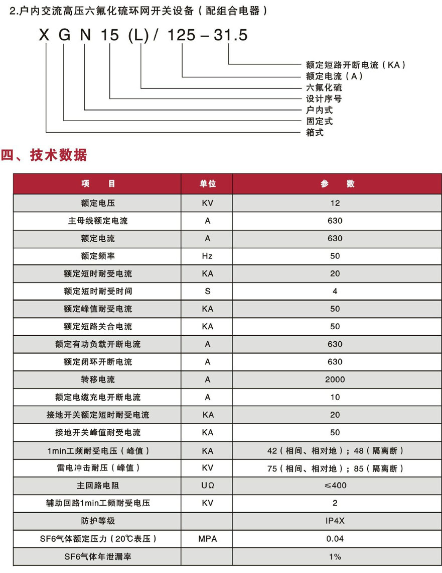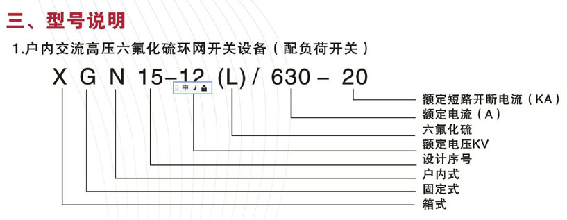XGN15一12(L)型戶內交流高壓六氟化硫環網開關設備